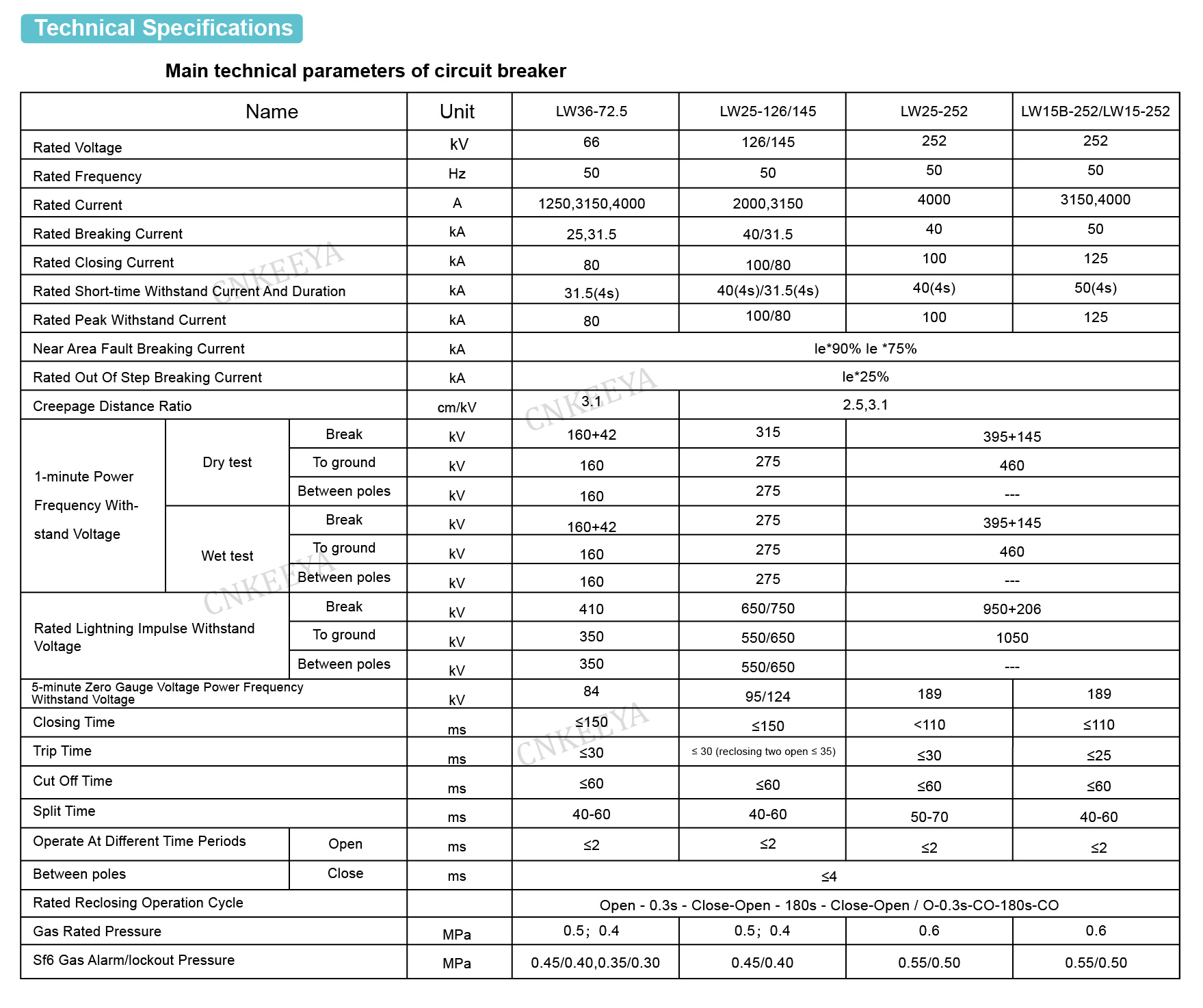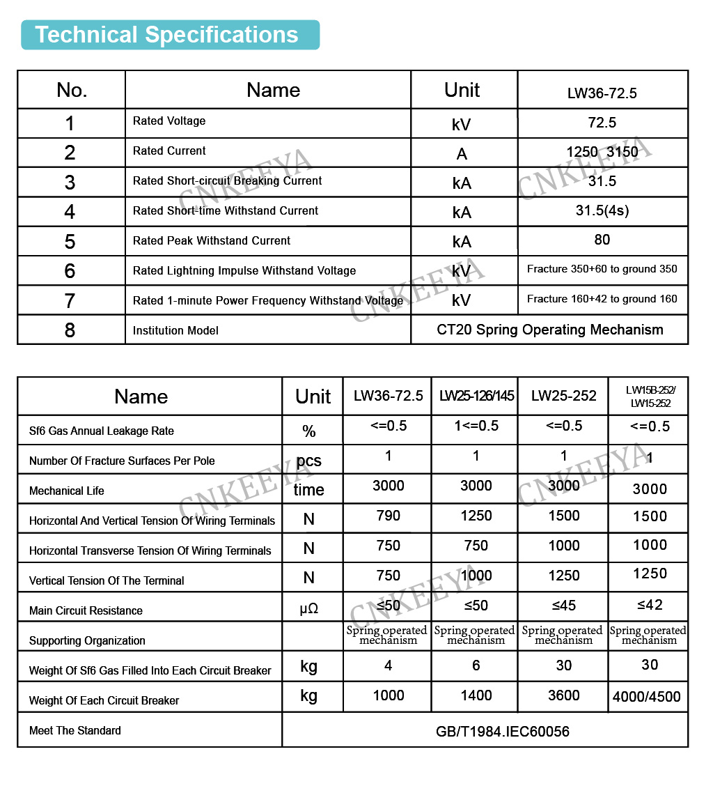 LW36-72.5 磁器柱型高圧交流 SF₆ サーキットブレーカは、自己エネルギー消弧原理とシングルブレーク構造を採用した CT20 スプリング操作機構を備えています。各サーキットブレーカーの 3 つの極はフレームに取り付けられており、伝達機構を通じて三相の機械的リンクを実現します。電子制御により、リモートおよびローカル操作を実現できます。